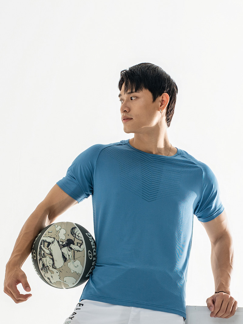 Áo thun chất liệu thun kim cương dày dặn, co dãn, thấm hút tuyệt đối.