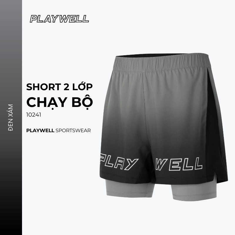 - Tên sản phẩm: Quần short nam thể thao 2 lớp Playwell Ombre 10241